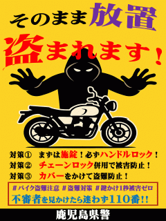 バイクの盗難が増加!! 盗難対策を!!