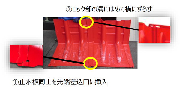 取り付けが簡単で平坦な地面に設置するだけで浸水防止に役立ちます。