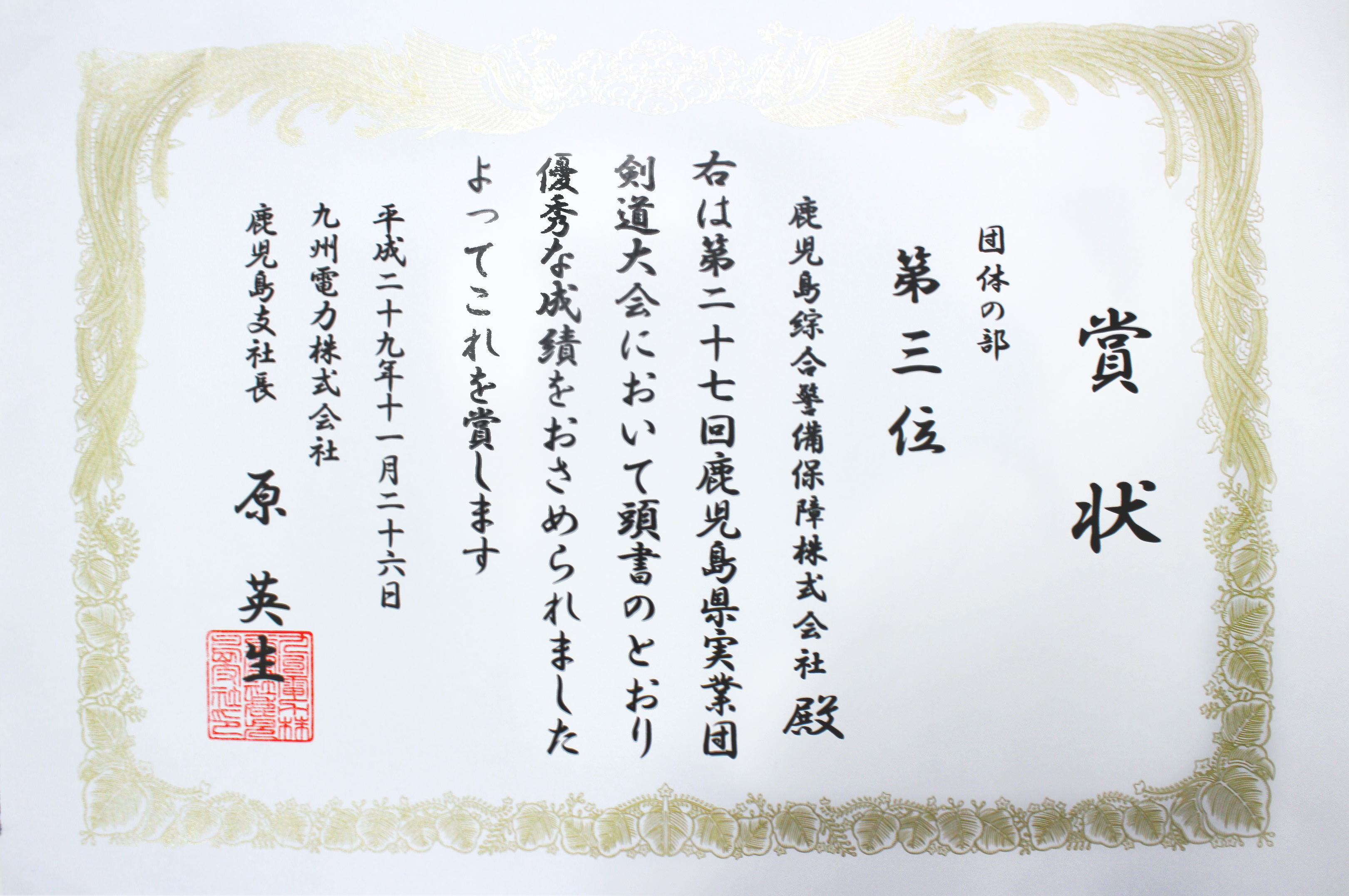 【 第27回 鹿児島県実業団剣道大会入賞 】