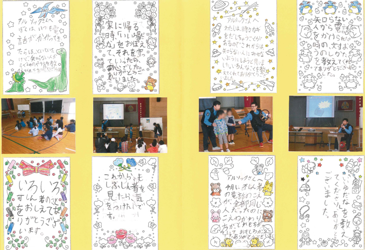 先日は、湧水町立栗野小学校と阿久根市立山下小学校を訪問し、児童の皆さんは、防犯のキーワード「いかのおすし」についてクイズ形式で答えたり、不審な電話に実際に電話機を使って受け答えしたりと、参加形式の授業で元気に学んでくださいました。