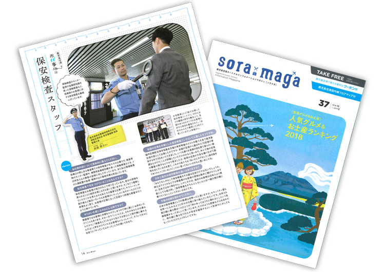 平成30年12月1日(土)発行 『鹿児島空港ターミナルフリーマガジンSora Maga(ソラマガ) 』に、空港で働く人を紹介する記事として、鹿児島綜合警備保障株式会社が掲載されました。
