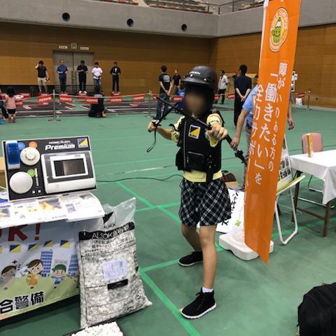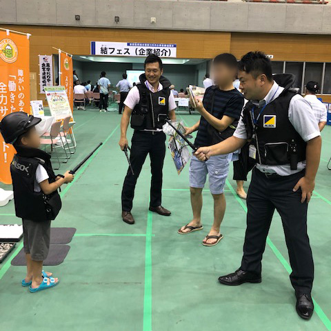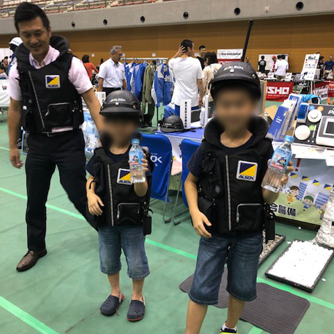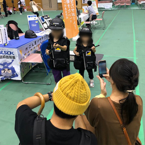 当社のブースでは、ホームセキュリティや防犯グッズ等の商品紹介と求人情報の紹介、そして、多くの子どもたちが、ALSOKのキッズ用制服を着用し、写真撮影等を行うなど大盛況でした。