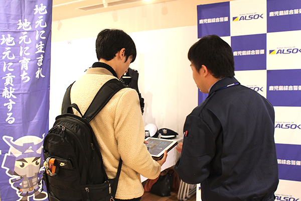 ALSOK鹿児島綜合警備の体験ブースにも、たくさんの学生や県内企業への就職志望者が参加してくださいました。