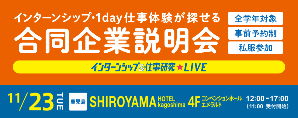 <合同企業説明会開催のお知らせ>インターンシップ・仕事研究LIVE鹿児島に弊社も参加します!