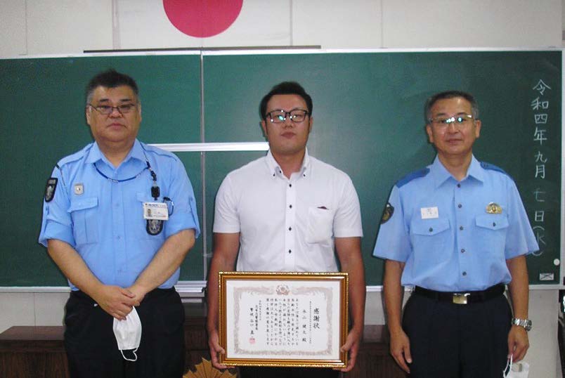 弊社社員が人命救助に貢献し感謝状を授与されました