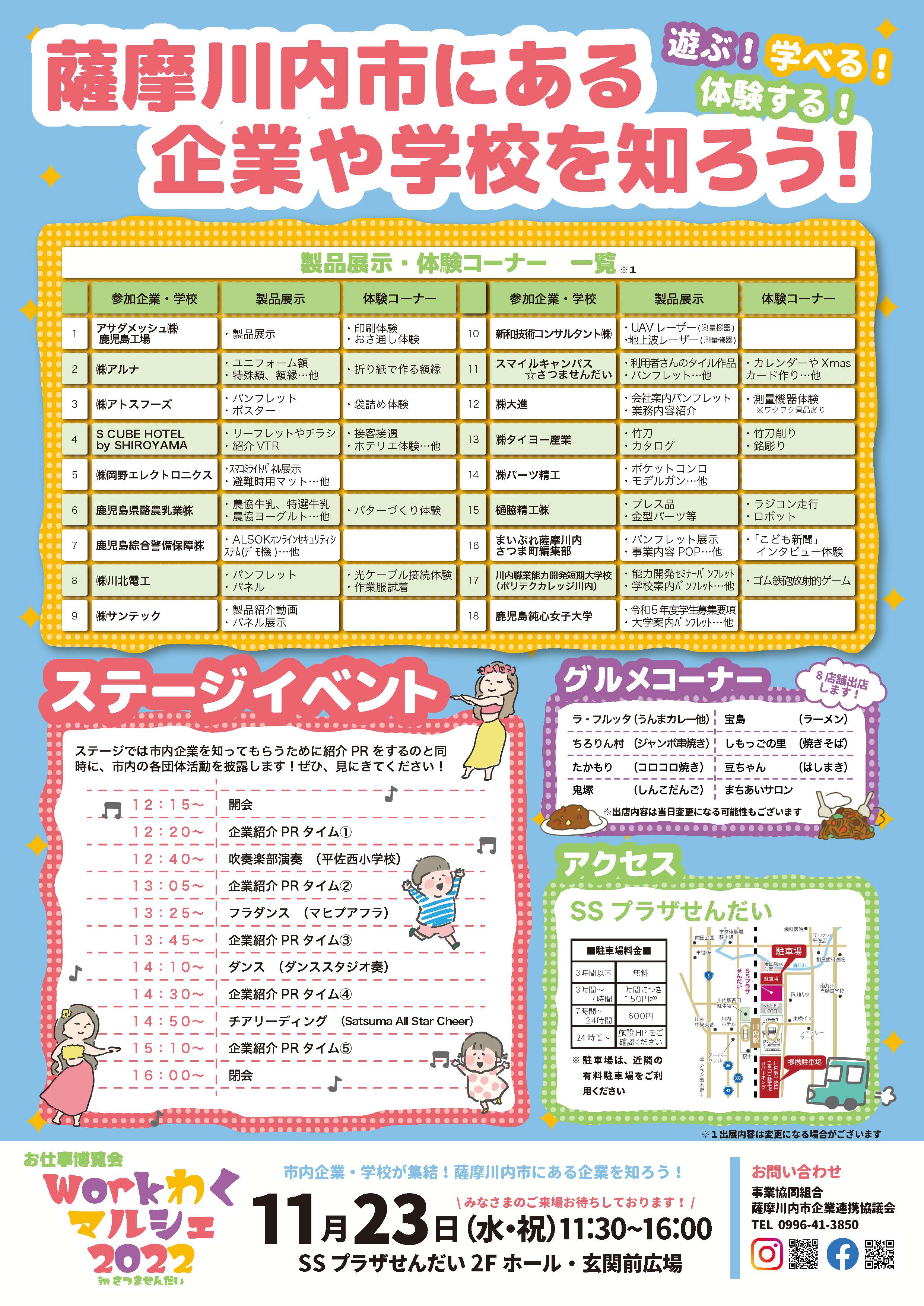 2022年11月23日(水)「お仕事博覧会Workわくマルシェ2022inさつませんだい」が開催されます。